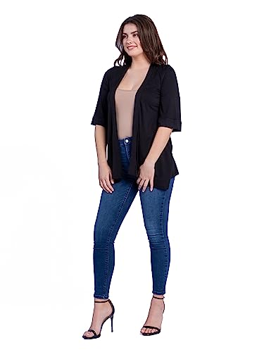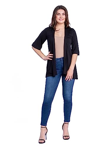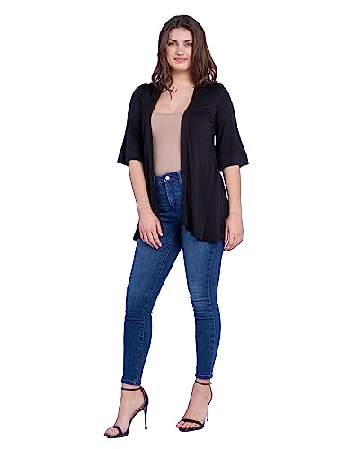 24seven Comfort Apparel Open Front Cardigans for Women Lightweight Elbow Length Sleeve Shrug Casual Cover Up Solid Color