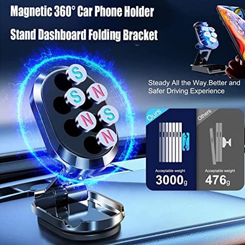 Multi-functional Magnetic Car Holder: 2023 new alloy folding magnetic car phone holder for cars has firm adsorption and can be multi-purpose. You can use it for the dashboard, instrument panel, desktop, and other smooth surfaces. Universal phone holder compatible with all smartphones.