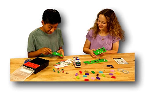 CRAZY CIRCUITS STARTER SET – Add electronics to any brick-based project with this fun STEM Kit. Learn circuitry, programming, logic, design, art, and design. Precisely engineered Crazy Circuits are “wired” with nylon conductive Maker Tape to add lights, sound, and motion to projects.