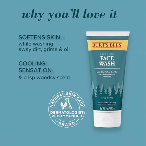Wash away all traces of dirt, grime and oil with Burts Bees Cooling Face Wash for Men. This product has a rich, creamy texture that gently cleanses to leave the skin looking radiant. Cooling Face Wash is also packed with aloe and hemp seed oil to keep skin feeling nourished and balanced while leaving behind a fresh cooling sensation. This cleanser is formulated with nutrient rich botanicals and is formulated without parabens, phthalates, petrolatum or SLS. Add this cleanser to your daily skin care routine. Its an easy way to keep skin looking and feeling great.