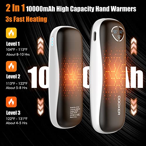 [Electric Hand Warmers] Excellent Heating Performance, our hand warmers provide 3 levels of heating(level 1: 104°F – 113°F, level 2: 113°F – 122°F, level 3: 122°F – 131°F), our hand warm can be heated quickly in 3 seconds by pressing the heat button.