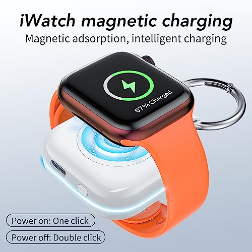 【Mini Compact】The size of the cute keychain portable charger for apple watch is about the size of your watch.The comfortable frosted feel makes people love it.New indicator light design(0-30% Red Light,30%-60% Blue Light,60%-100% Green Light), fashion, keychain design,Convenient for all kinds of travel.
