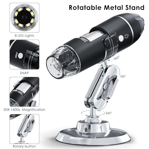 ☁【8 Adjustable LED Lights】Built-in 8 adjustable LEDs provide sufficient illumination even in the dark. This microscope is ideal for children, students, engineers, inventors, collectors to magnify microscopic objects such as coins, skin, PCBs, hair, etc. Not suitable for serious biologists!