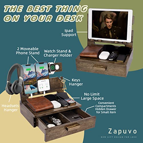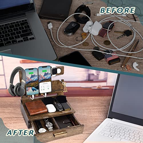 More Convenient Design – Experience ample storage space to conveniently store all your essential items with our wooden docking station. Our phone docking station for men features a hidden drawer with 2 compartments to easily store and organize your small items including coins, rings, keys and anything else you want to keep safe and sound!